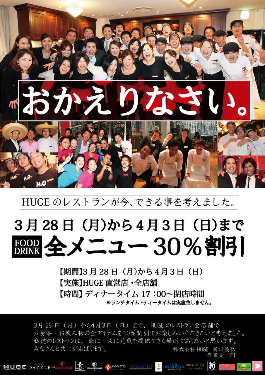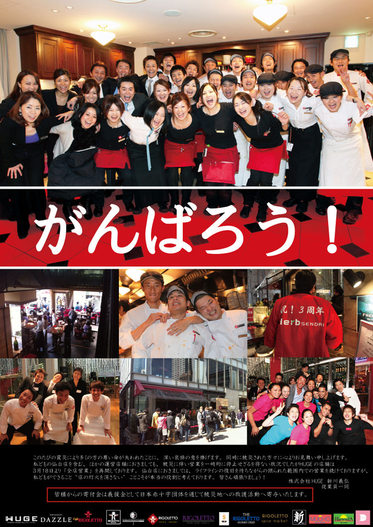 そして、震災発生から1週間後に、HUGE全店舗に張り出したポスターがこちら。