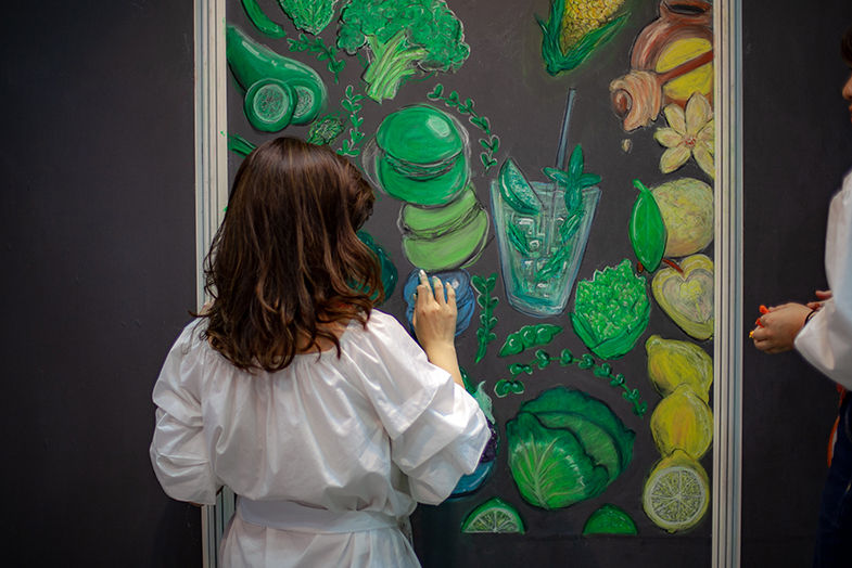 その場で、黒板チョークアートのライブペイントを3日間実演しました!