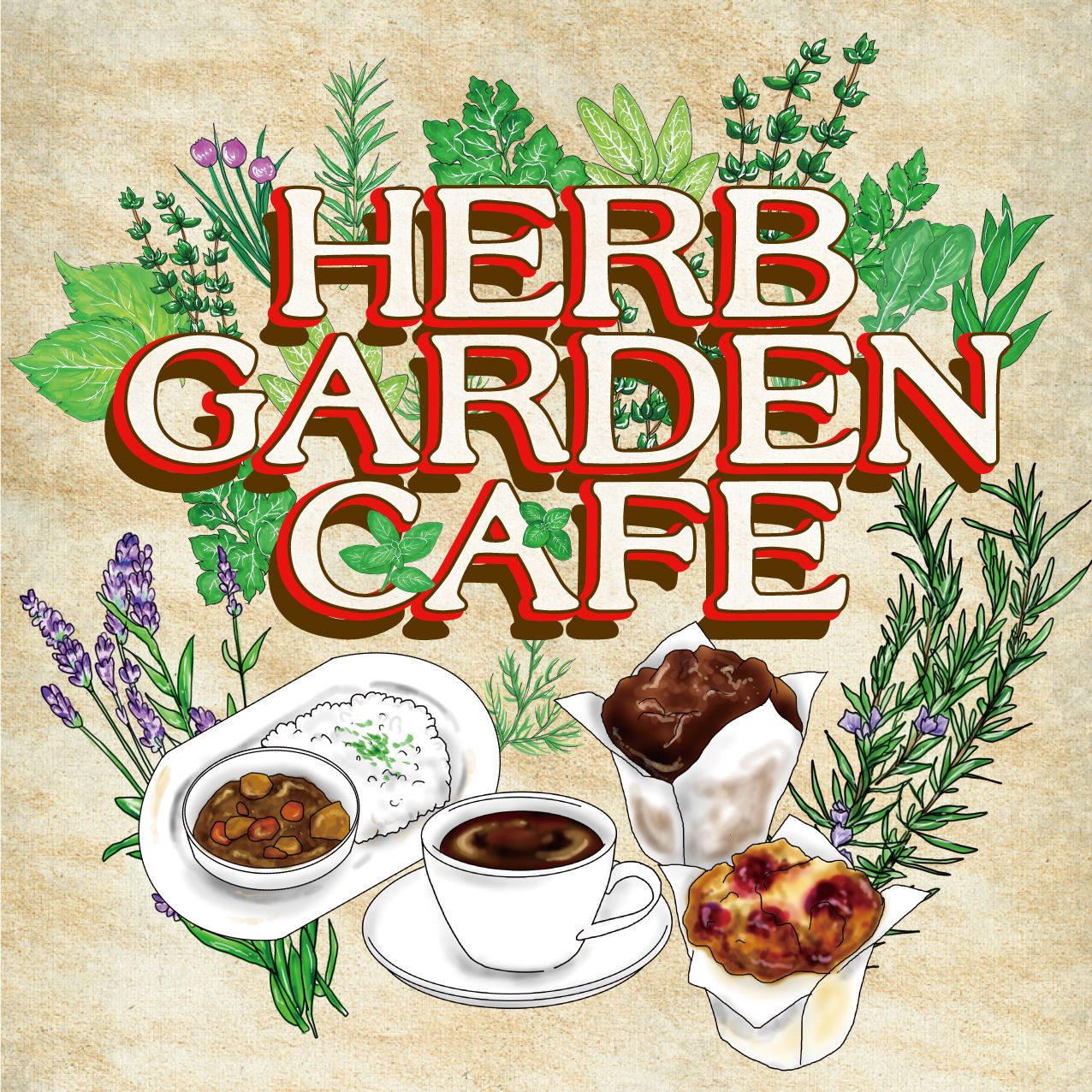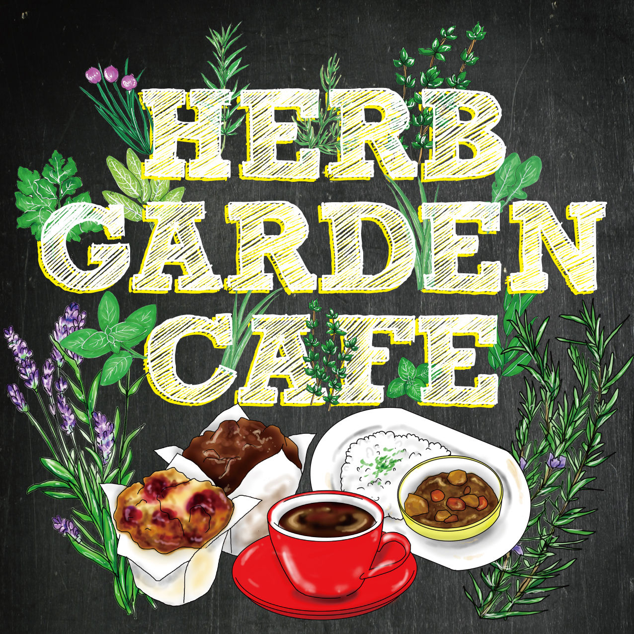 そちらの料理イラストと、店舗の名前にも入っているハーブのイラストをふんだんに使いました!