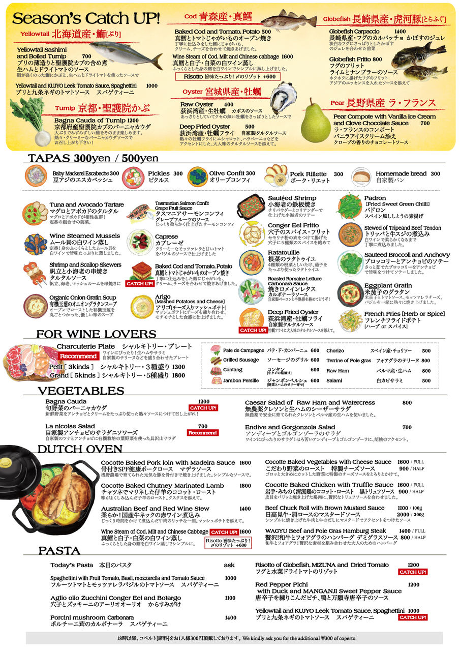 HUGE各店のメニューも秋の食材がたっぷりのメニューが登場しています。
