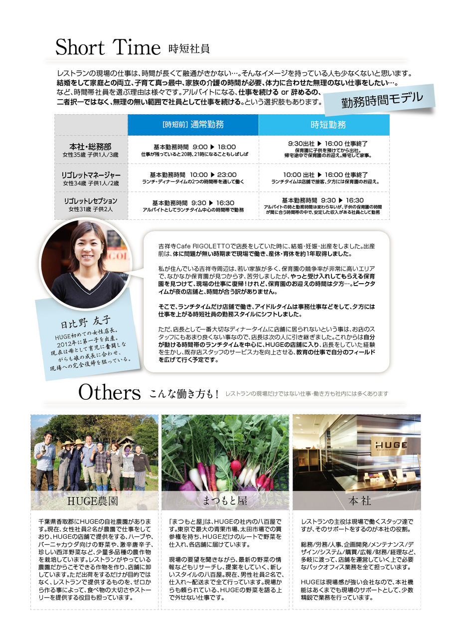 このような、無理をしない働き方もHUGEは用意しているんですよー!